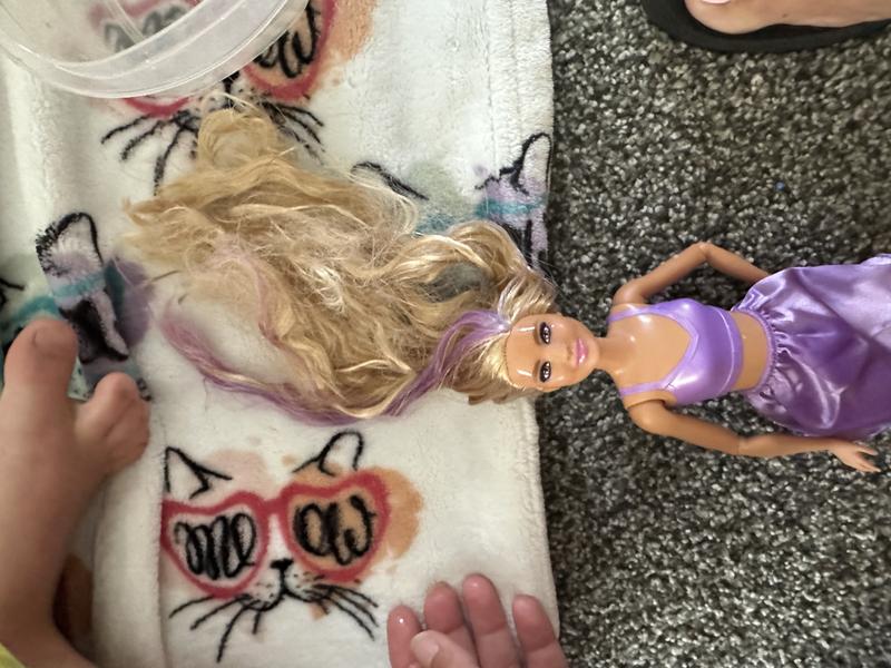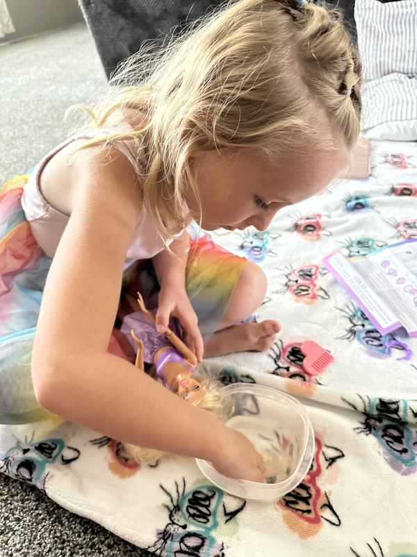 This is a great present for any child who loves small world imaginary play. The cute dress up outfit in a fluffy style added an extra bonus for those who love Barbie, with lots of cute accessories and extras . The bonus surprise with the hair was even more loved. Great present for birthdays or Christmas.