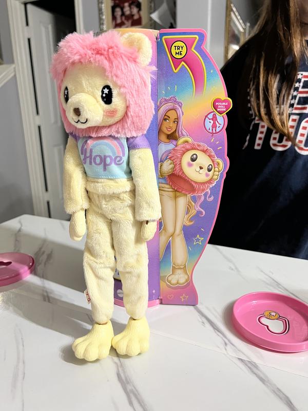 My daughter adores this Barbie cutie revealm the lion costumer is so cute and soft and she had so much fun unwrapping all the extra accessories and outfits included. She loves that it is two dolls on one. AmaIng and hours worth of fun
