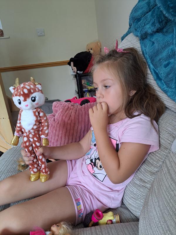 My daughter absolutely loved this doll and accessories! The little deers eyes came open and we did the color change to close them and now they won't change back to open. The doll had makeup and we did the color change and she also won't change back with the pink eyemakeup or lipstick. My daughter went from happy to sad quickly!