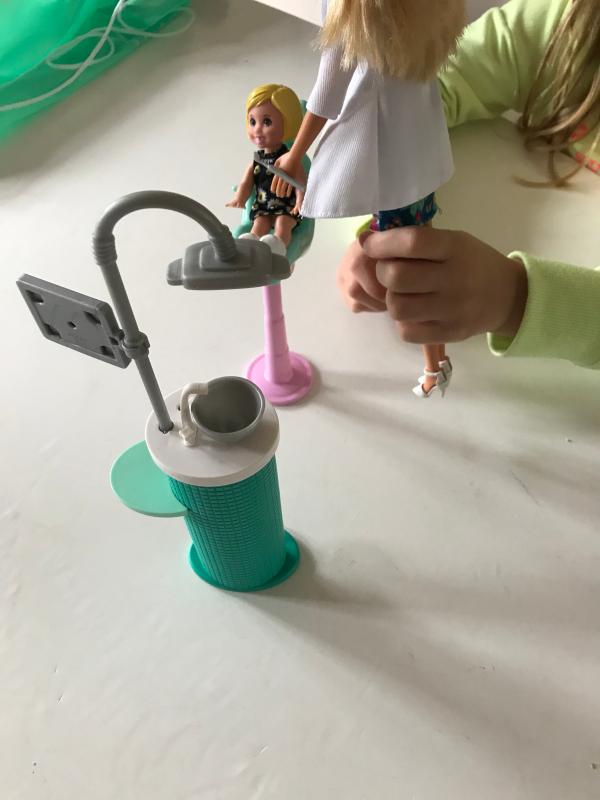 This is a lovely little play set. The dentist desk has little shelves to store the accessories, the chair tips back to give that full dentist experience. My 5 year old loves it! She has lined her other Barbie's up ready to go to their dentist check up. Hopefully playing at being her own Barbie dentist will make her happier to visit the dentist herself in future, we might just bring Barbie dentist along for encouragement.