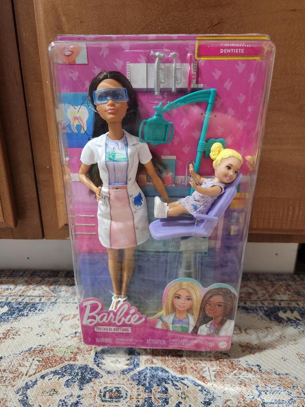 My daughter loves playing with this Barbie and the dental chair and “patient”. The dolls also hold up very well to manipulation and being posed over and over, which is great. One issue is that some of the accessories are very small and easily lost. We wish the shoes were maybe not removable and that the outfit was longer/more realistic. Overall, the toy is a hit, and she loves that it has multiple ways to play.