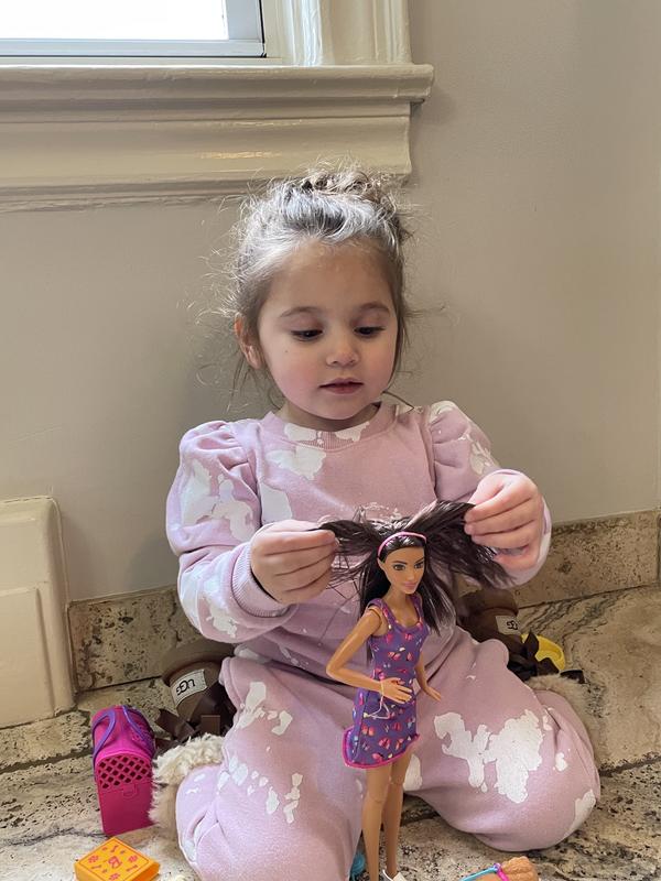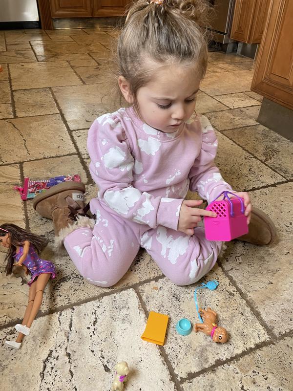 This is an adorable Barbie set. The little puppies are super cute but some are also super tiny. This was opened and played with immediately. She even filled out the little adoption certificates. It goes perfectly with the other Barbie set with the dog that’s births 3 puppies. She’s loving all the little puppies and sets them up to be adopted by all the other Barbies we have.
