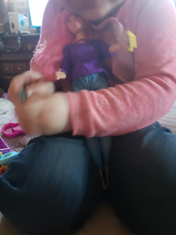 My daughter purchased this doll today! Miss Daisy has fabulous pink hair. Comes with a big suit case that can hold just about all her accessories. The guitar is super adorbs! The only issue is hair! I feel like a broken record. The hair on Barbie today is just awful. I would reach out to Mattel customer service, but I’m gathering much like all the others they will not have a replacement on hand. Overall we would recommend this doll, just know she’ll have stiff hair, like she may have played with a bottle of hair spray.