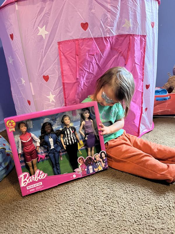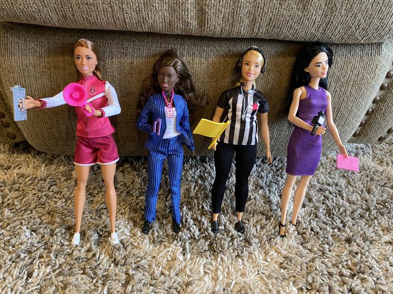 The Barbies have taken over football and the game has never looked better! This set comes with the coach, general manager, referee, and sports reporter all with unique accessories and offering major girl power for traditional male dominated careers. We absolutely love the female referee who looks like a real woman. Amazing quality and playability!