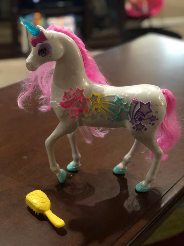 When I ordered the Brush 'n Sparkle unicorn for my 3 and 4 year old girls, I assumed it would be a fun, occasional accessory to their Barbie collection. Surprisingly enough, this unicorn has become a character of it's own. My girls love brushing her hair, making her lights and music go and putting her in her own storylines and scenarios. Something I've noticed and greatly appreciate about this toy is that the hair is very secure. A lot of toys that encourage brushing end up shedding a ton, especially in the hands of rough little ones. This one has held up nicely and still looks brand new. The unicorn craze is real and the Brush 'n Sparkle unicorn is the perfect addiction to any little unicorn lovers collection!
