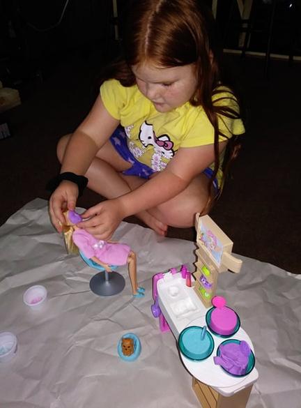 I received this toy for my niece. She was so excited when she got it! She constantly plays with this and brings out her rest of the barbies for a spa day! Keeps her entertained for hours! The Barbie play dough is soft and easy to work with. It doesn't stick to the carpet which is awesome! Highly recommended as it comes with tons of accessories. Great addition!