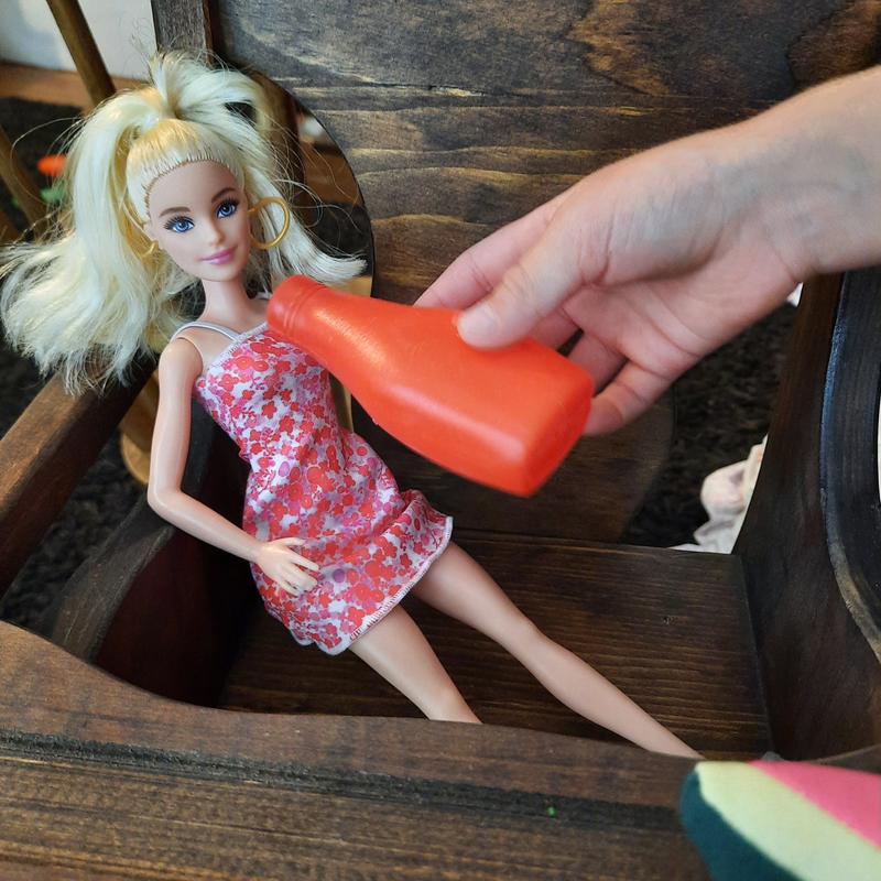 My granddaughter was excited to see the Barbie doll but because it was so stiff, she went back to playing with her American Girl baby. We tried to get her to interact with us as we each held another doll, but she was not interested. My apologies.