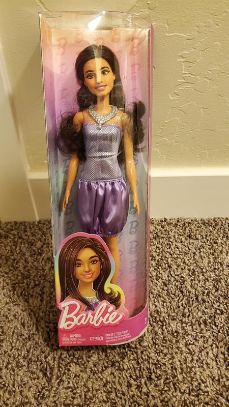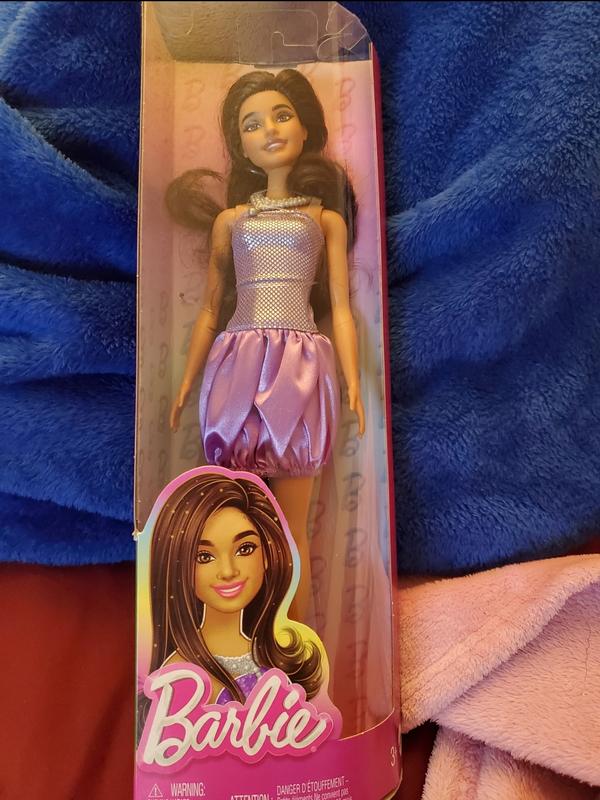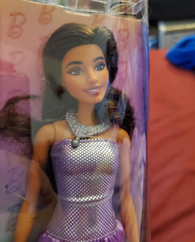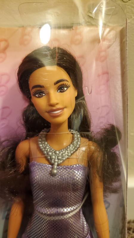 Fashionistas Doll 234 in Sequined Purple Dress and Silvery Accessories, Brown Hair