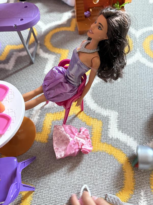 This doll is Goregous! My daughter was immediately drawn to her sparkling purple dress and highlighted brunette hair. My little one is pop star crazy right now and this Barbie def fits the bill. The shoes fit great and don’t fall off during play which is always a plus for us!
