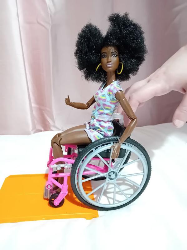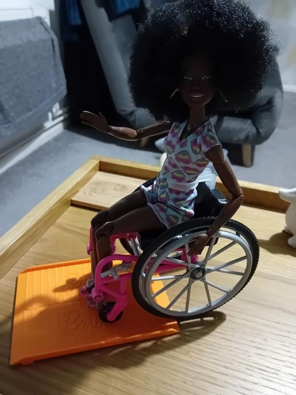 My daughter has absolutely loved playing with the Barbie Fashionistas doll with the wheelchair and ramp! It's been such a refreshing change to see a Barbie that reflects the world around us, and it's opened up so many new storytelling possibilities for my daughter. The wheelchair itself is really well-made, with rolling wheels and a working brake. The ramp is a fantastic addition, and it even works with the Barbie Dreamhouse (which we don't have yet, but that's next on the birthday list!). It's great that the doll has so many joints too, because she can easily be positioned in and out of the wheelchair for realistic play. But the most important thing is that my daughter sees herself and her friends reflected in this doll. It's opened up conversations about inclusivity and accessibility, and it's shown her that everyone can be part of the Barbie fun. Plus, the bright outfit and trendy style are a big hit – we can't wait to mix and match her clothes with other Barbie dolls in the collection. Overall, I can't recommend the Barbie Fashionistas doll with wheelchair and ramp enough. It's a brilliant toy that's both fun and inclusive, and it's sure to become a favorite in your house too!