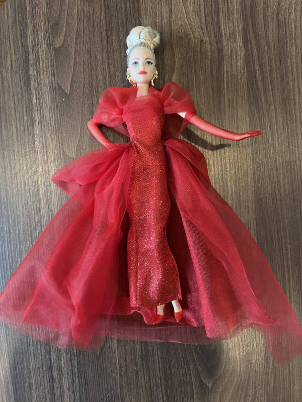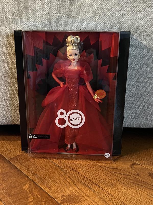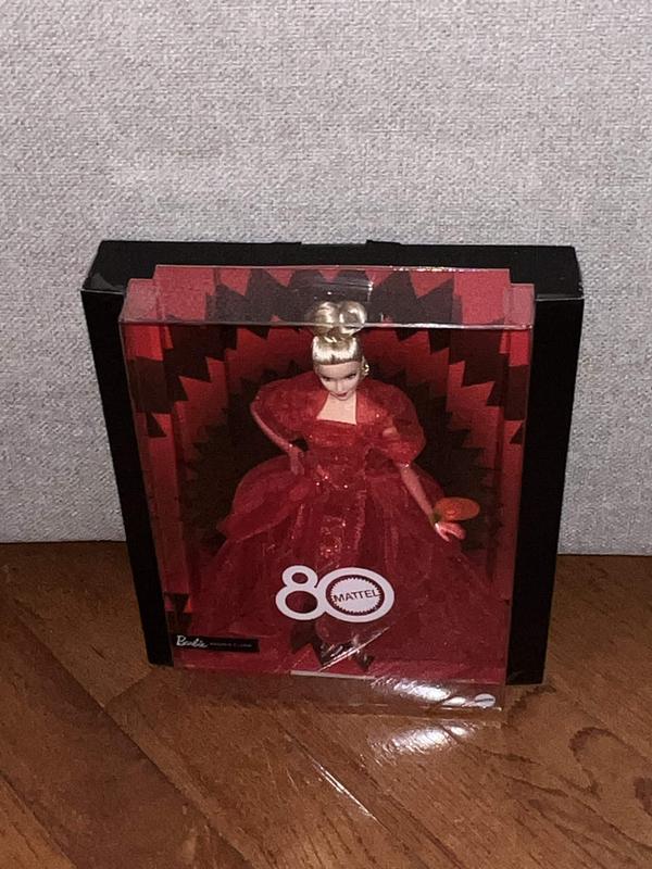 This 80th Anniversary Barbie doll is movie star chic with her hair styled up, a sparkling red dress with matching heels and gloves and gold earrings. It is perfect for a collector’s display case. I bought this intending to use it as a toy, which was a mistake. The material for the dress is mesh, and so not very durable to play. There are several plastic ties that make the dress flow perfectly in the box, but those ties were difficult to take off. During unboxing, I unintentionally made some small tears in the mesh part of the dress and on one glove. Most unwelcome was the glitter: just handling the doll led to glitter all over. Overall, the doll is beautiful and classic in the way one would expect from an iconic figure. As a toy, this is impractical. Keep this one in the box on a shelf.