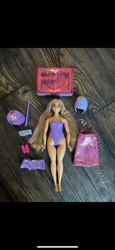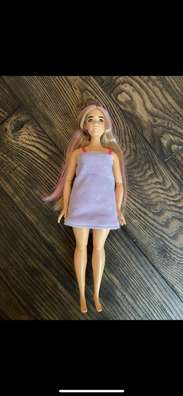What a fun Barbie! There are three different presents to open to reveal the Barbie and the party accessories that accompany her. My daughter received a Barbie that came with a face mask, hair wrap, earrings and necklace, purse, high heeled shoes, a dress that can be reversed into a towel, and a cute cat in a lipstick container. Likes: the Barbie had a normal body shape and even had freckles on her face. She comes wearing a purple bathing suit, which I prefer so there aren’t cloth less Barbie’s lying around her room. The arms and legs have joints and it makes them move to mimic a real person. You can also change the Barbie’s hair - hot water turns it pink and cold water turns it purple. My daughter enjoyed opening all the presents to retrieve the accessories and it feels like the doll was made for a party. Dislikes: while it’s fun that the earrings and necklace can be removed, the earrings are very tiny and could get lost easily. The animal also comes in a lipstick container and is enclosed in slime - I wish they didn’t have the slime around the animal because it gets all over.