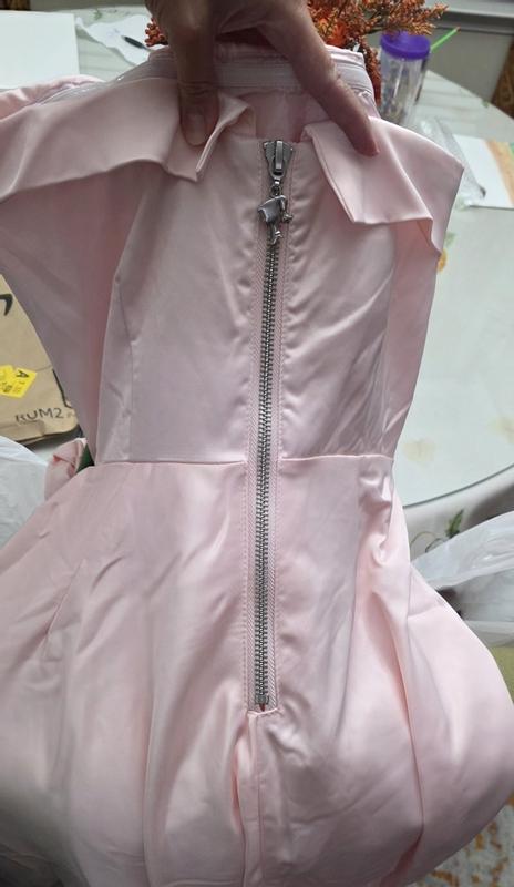 Nice quality fabric for price. Pretty pale pink as pictured, definitely not white. I wish it was a bit longer I am 5ft 8” and in heels 6ft and would have liked this to be floor length on me but it’s a bit short
