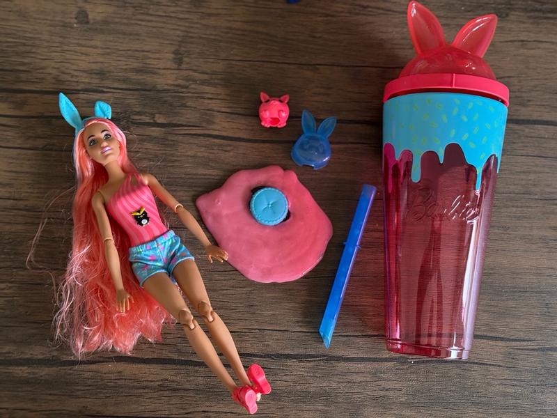 My daughter had a lot of fun playing with this Barbie pop reveal doll! She enjoyed playing with the Slime and popping the little icecubes to reveal the cushion and dolls shoes. Then she discovered the little bunny and loved playing with that and topping the straw with it. She liked dressing up the doll with the shoes and her shorts and little bunny ears. There was a lot of fun to be had discovering all the different elements to put her together. Even more fun that her cheeks had little tattoos that appeared when you put an icecube on her cheeks. The doll was really well made and even had articulated ankles unfortunately she didn't have articulated wrists though which would have just finished off the doll I think. All in all my daughter loved playing with this doll and I will definitely purchase her more!