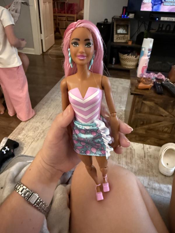 My daughter was so excited when she received this Barbie! The opening was exciting as there were surprises while opening. She loved the Barbie and her colorful hair! It was such a fun experience unpacking this Barbie and all the little treats throughout.