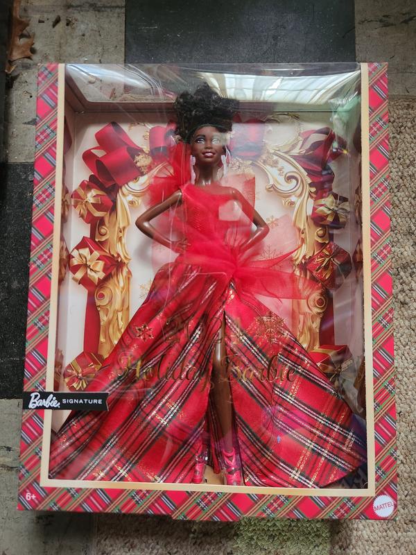 Signature 2024 Holiday Barbie Fashion Doll, Seasonal Collector Gift, Brown Hair with Plaid Gown