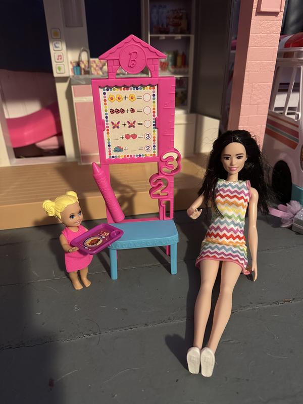 This set is so cute! My daughter loved getting the teacher Barbie since her dad is a teacher and she looks up to them. She’s really enjoyed that it comes with the teacher and the student along with class set up. Perfect!