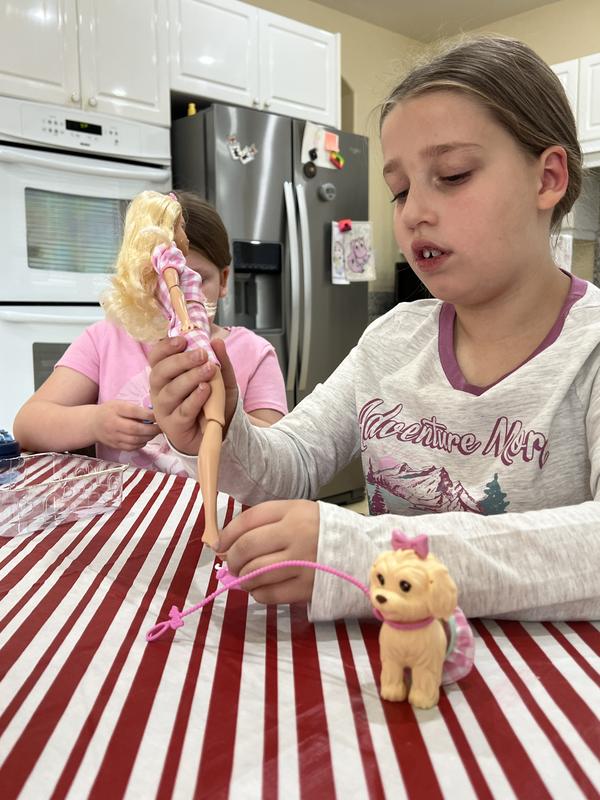 This Barbie Twinning set is absolutely adorable! The matching outfit with her dog is such a fun and unique detail that really stands out. My 5-year-old was immediately excited, and even my 8-year-old enjoys adding it to her Barbie world. A sweet and playful addition for any Barbie fan.