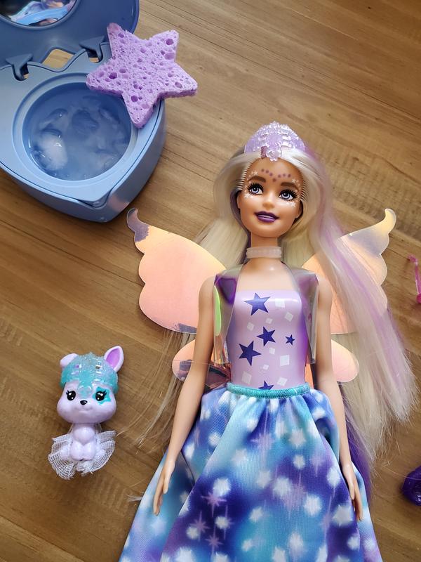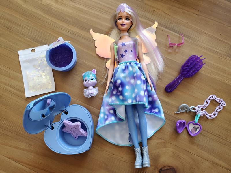 Our 8 year old Granddaughter was so excited as she unpacked surprise bag after surprise bag and so on, this toy really is the gift that keeps giving because it includes so many surprises! The surprises were so NICE too! My Granddaughter was excited about the Heart shaped box and Bracelet that she could wear. She loved dressing her Doll in the Fashions that came with. We liked how easy it was to attach her wings and that they didn’t fall off. The way her arms moved added to the play experience. The way you reveal the Doll is cool - it really makes that excitement last longer! The ability to change the way some features look like makeup, designs on her permanent clothing, highlights in her hair, just by using cooler or warmer water was neat, plus it is not messy at all - What a fun idea! Our Grandaughter gets a kick out of the fact that she can make the changes just by holding her hand on different spots because the heat from her hand is enough to activate them. You really have included a lot of nice extras in this set. I was very happy! Our Granddaughter is really enjoying The new Barbie Ultimate Color Reveal Fairy Doll! The slim with the pouch of glitter was fun. I appreciated that it wasn’t nasty! and didn’t make a mess. You guys hit it out of the ballpark with this toy too!