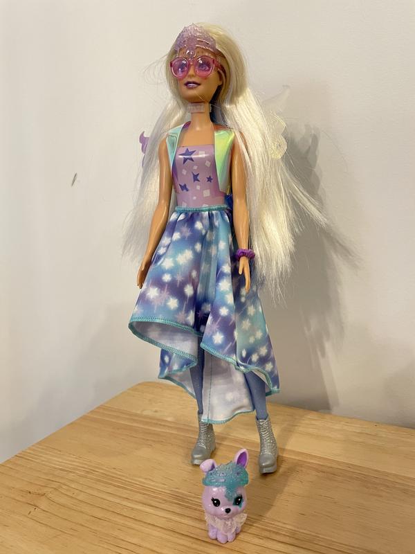 I got my daughter this because she loves blind bags. How awesome to be able to reveal a Barbie doll down to the color of her shirt n legs. Along with a ton of blind bags with more surprises. Including a cute little puppy. My 4 year old had so much fun opening all the bags. She truly loves the barbies hair color and all the colorful accessories it came with. As always a very durable Barbie!Thank you again for amazing Barbie!!