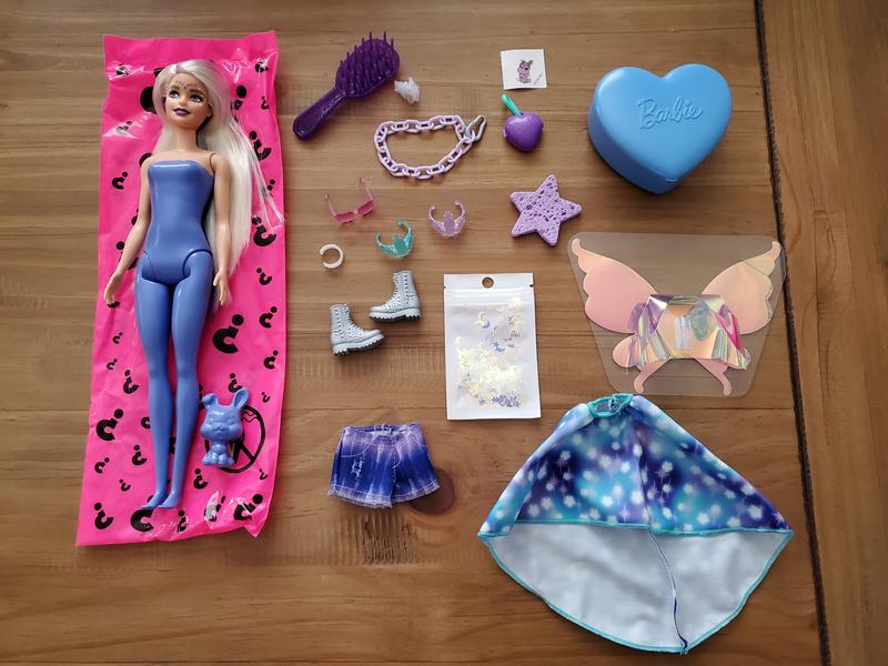 I received this toy in exchange for my honest review. The Barbie came in a package that allowed you to open multiple compartments and keep discovering more accessories and clothes. My absolutely loved opening so many different packages. One of the things I didn't like was as soon as I went to put on the Barbies boots, the light blue/purple covering her feet and legs was already peeling before i could even put the boots on. The Barbie and her pet were supposed to be color reveal with the little star sponge but I could never get it to work. Its a great concept, but this doll in particular just didn't work.