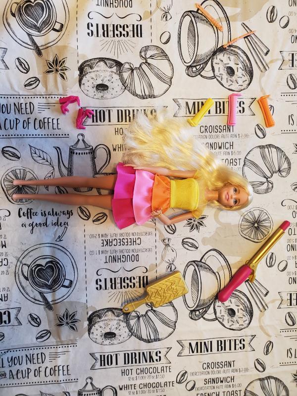 My 6 year old daughter and I have been playing with this Barbie and having a great time. It is fun to curl the Barbie’s hair and I can also teach my daughter curling iron safety. The downside is that the hair doesn’t stay curled and the barrettes are hard to keep closed.