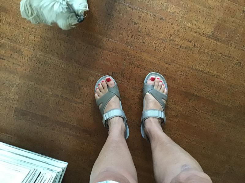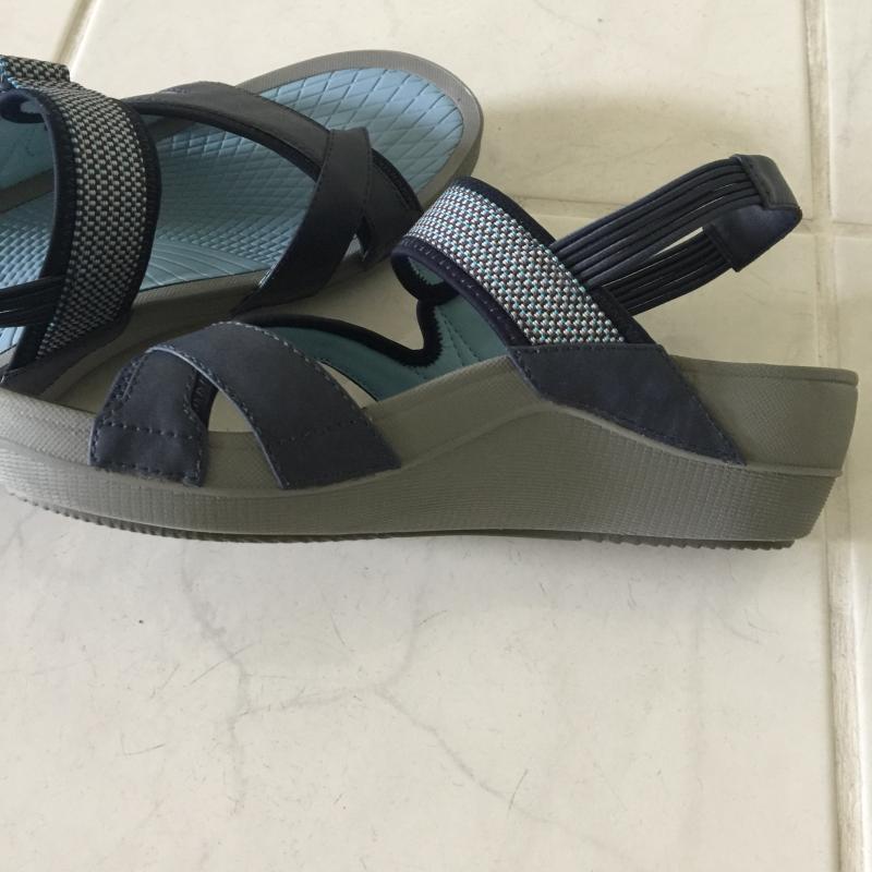 I needed a sandal as I am recovering from ankle surgery from a few months ago. Needed support and comfort and this sandal does it for me. I have some nerve damage, too, and found these sandals to be soft on the top of my foot. I normally wear an 8, but ordered 81/2 for a bit more room for my toe, but they fit wonderfully, even though I sized up. I own the navy, but am ordering the black now.