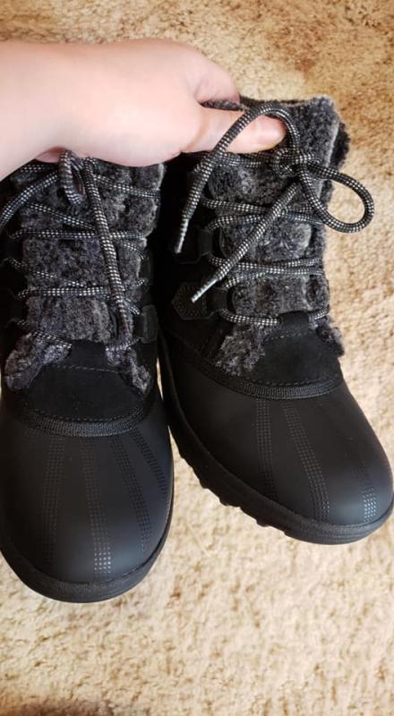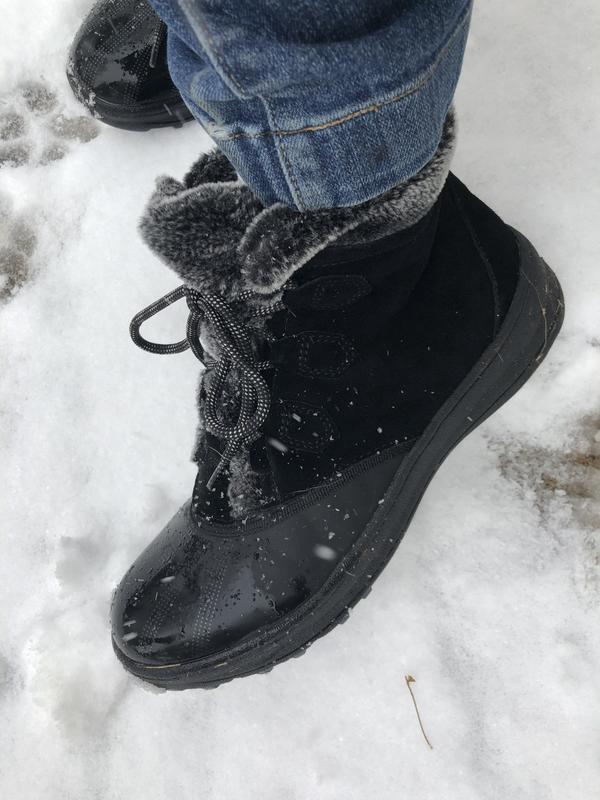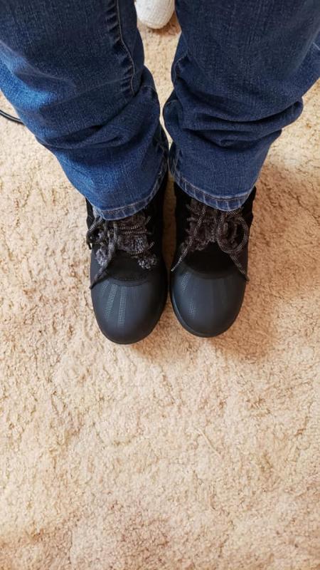 These boots are quite warm! I love that the entire boot is lined with faux fur. It's soft and makes your feet very comfortable. The only thing that bothered me a bit was that the boot was a bit tight around my ankles. I guess I'll have to wear them a bit more to loosen the area. They fit true to size even with thick socks. They're really easy to put on and tie up. I have other boots and I have to sit down to put them on. Some have hooks that are time-consuming to lace up. I don't have to do that with these boots. Overall, they're comfortable and warm. I haven't worn them in snow yet since it hasn't snowed yet, but they're supposed to be water-resistant. I'll spray them with waterproofing spray just in case. I don't want cold, slushy snow seeping through.