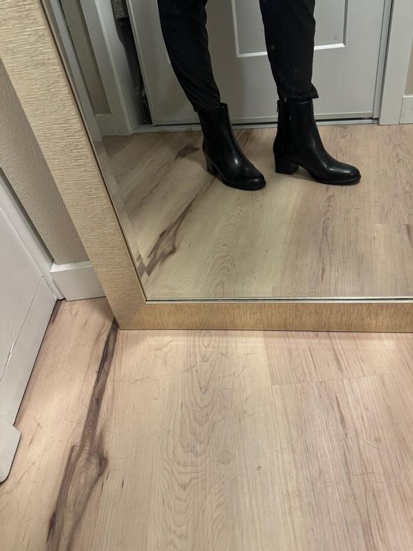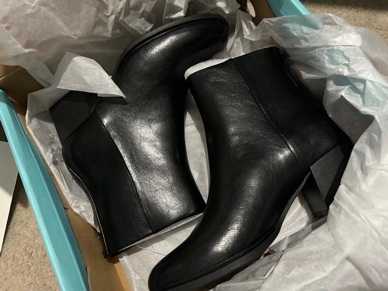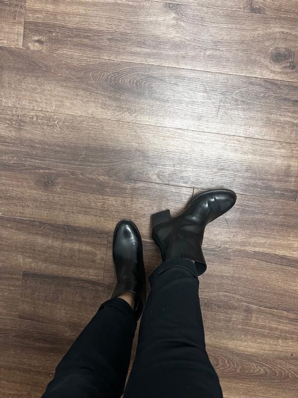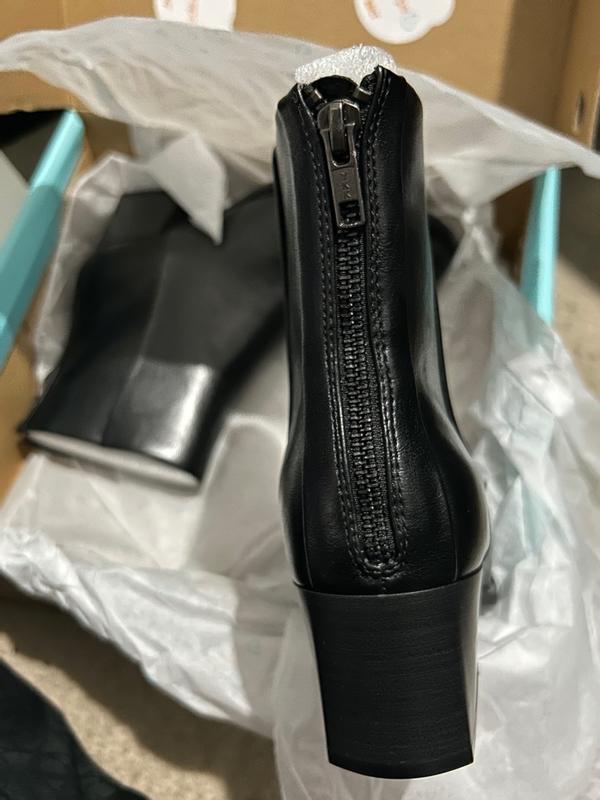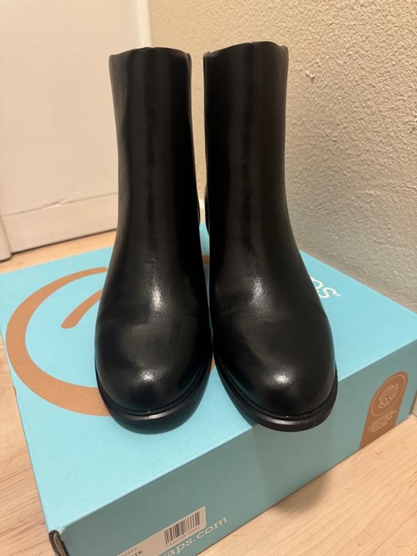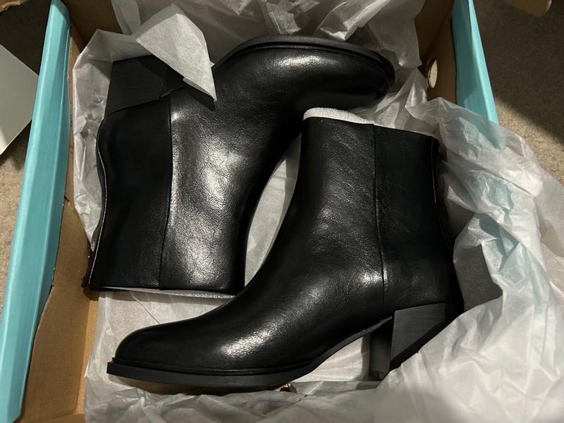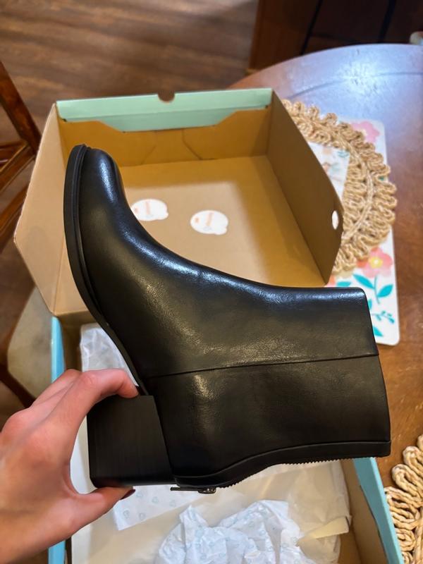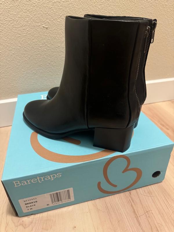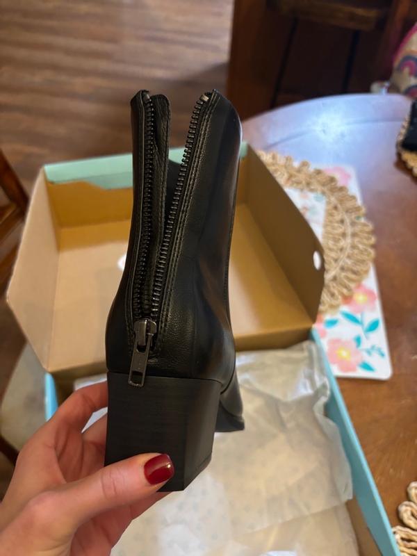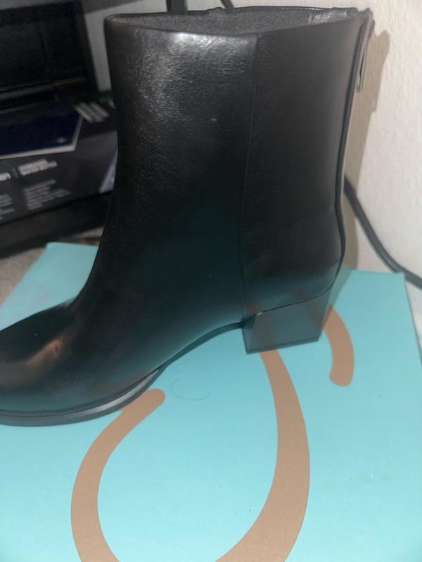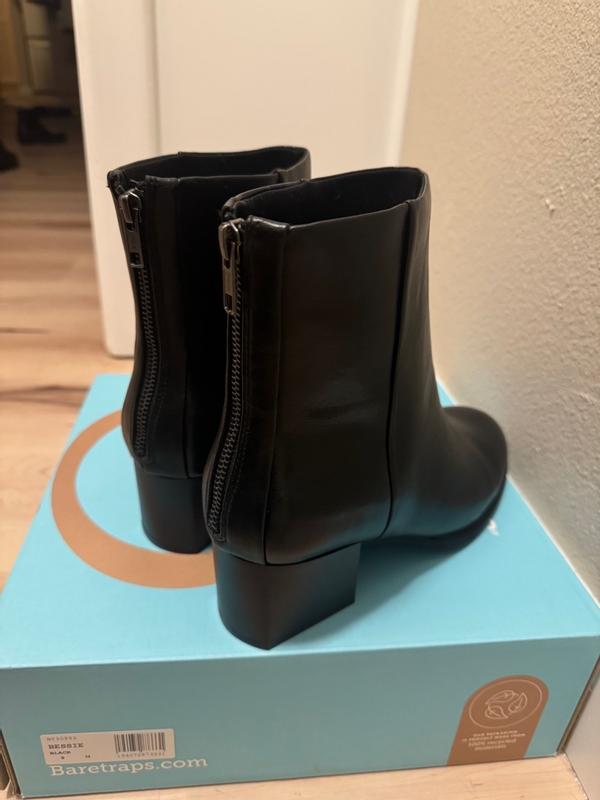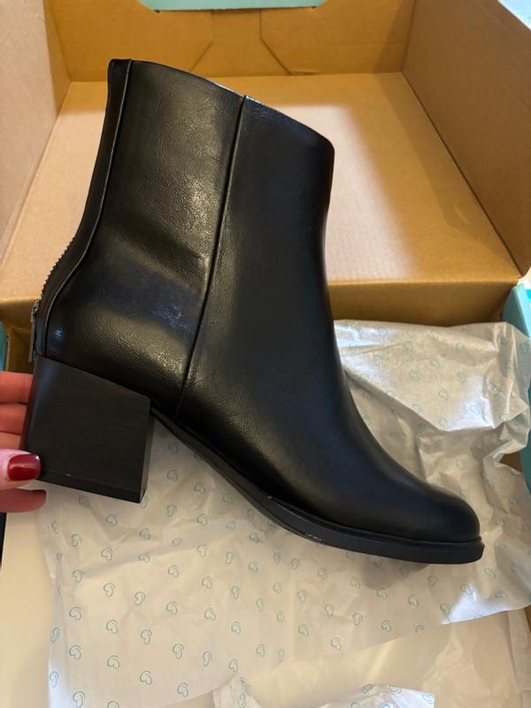 Needed back booties. Never bought this brand before- I love the material- love the sturdiness of the heel. The zipper in the back made the boot on the side look elegant. Classy heel sound when walking. Love them. Wore to an 8 hr work day- half or more walking.