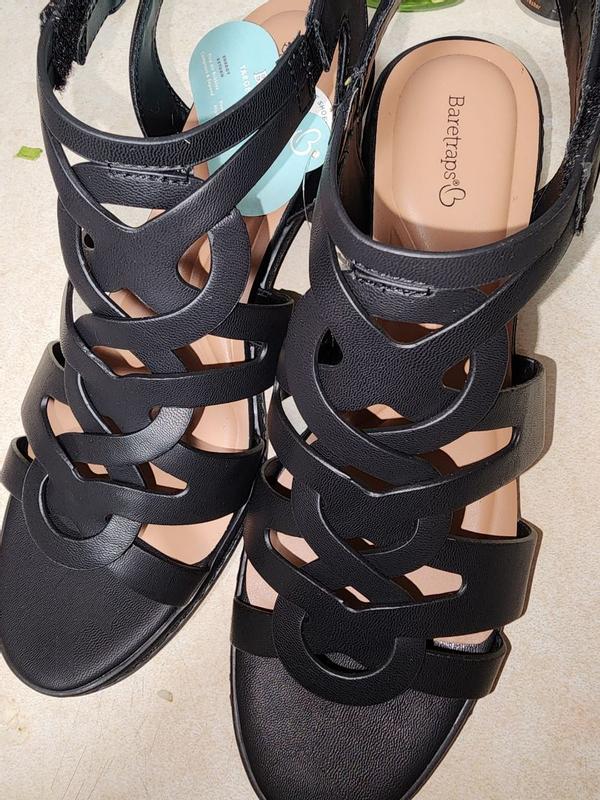 I was very happy to find these cute sandals that are also comfortable! The heel height is enough to give me a little more height and dressy look but still feel good. I was a little disappointed to read that they are not leather but the straps do look like they are sturdy and will hold up.
