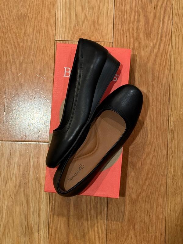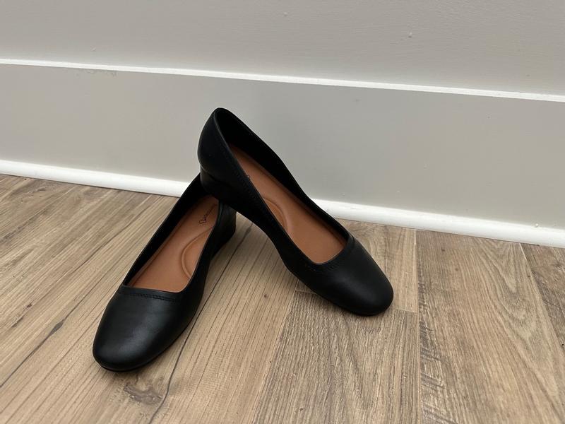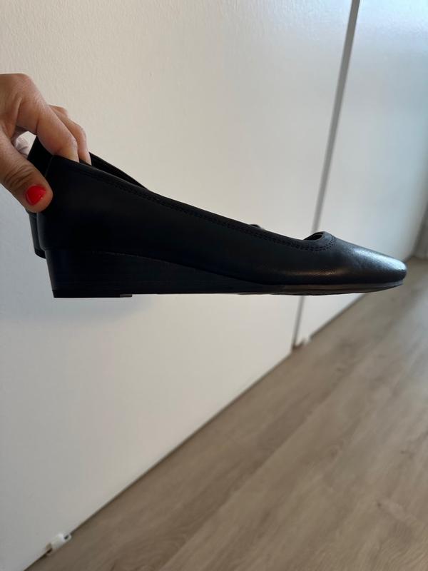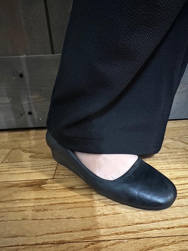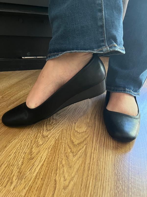 Plain elegant pump with low wedge BUT is not comfortable in the toe area.