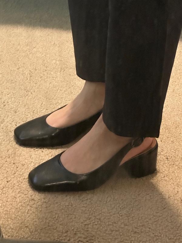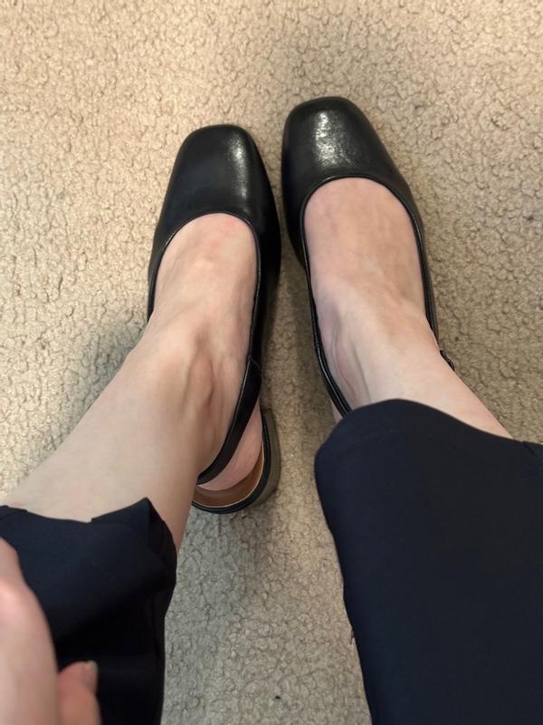 These shoes are wonderful for work attire with a thick feel that looks nice with both dresses and slacks! The shoes fit nicely and can be worn all day!