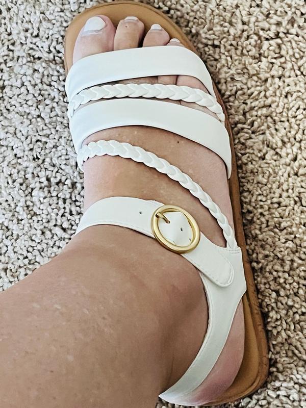 As someone who’s always on the go, I need sandals that are both stylish and comfortable, and these adorable sandals check all the boxes. The cushioned footbed provides great support, making them perfect for long days on my feet, whether I’m running errands or heading to brunch. The white color is crisp and versatile, pairing effortlessly with everything from jeans to summer dresses. I also love the subtle wedge!! It gives just a little extra lift without sacrificing comfort. These have quickly become my go-to sandals for effortless, all-day wear.