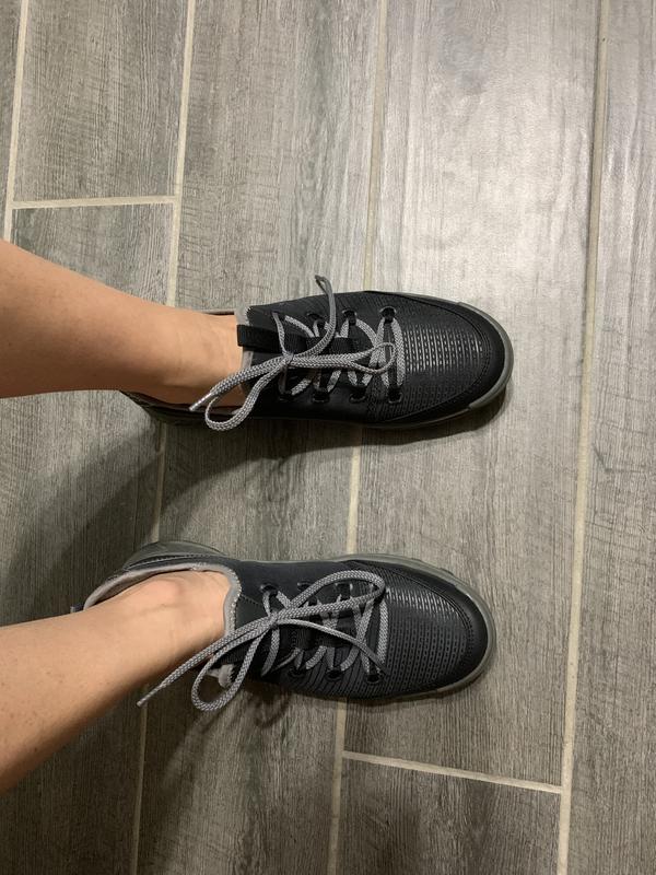 Nice shoe. Too clunky for me. No support with Velcro strap.