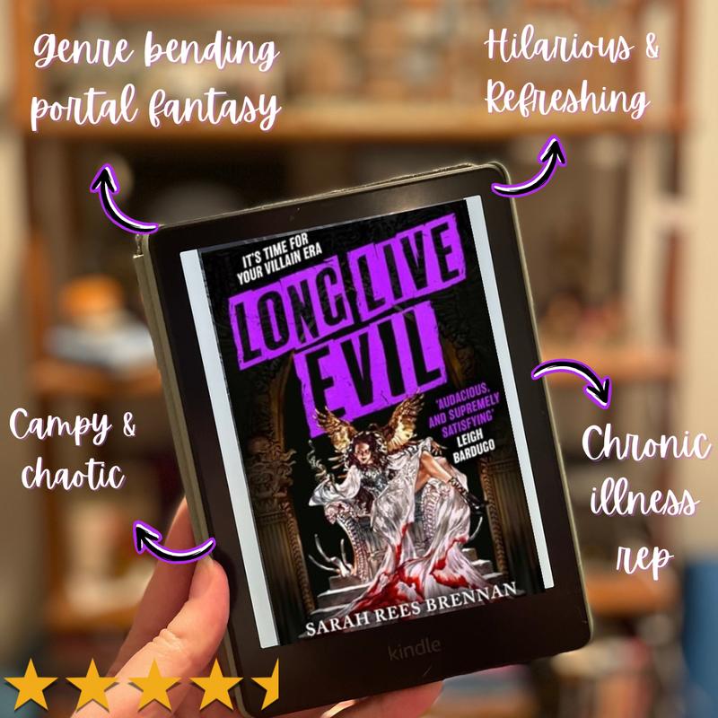I love a good villain tale. I'll root for Hades over Hercules and Maleficent over Aurora because it's more interesting. Sarah Rees Brennan did an amazing job giving each villain a backstory that would make you want to root for them. I picked up this book thinking it would be light and funny with a bit of romance but it was a way more introspective the more you read. There's found family, death, and deeper meaning to what makes a character truly "evil". With an axe wielding maid, murderous guard, and a flamboyant spy, I was excited to read all the hijinks of Long Live Evil. What made this a 3.5 (rounded up to 4 star) for me is difficult to explain. Maybe I'm not into meta stories because the modern humor did feel cringey in some parts or maybe there were way to many characters and I prefer a single POV. The book just felt slow in the middle and it took me forever to get through 30% of the book without being incredibly bored. It did pick up in pacing but I was already far to uninterested to get to the end. I do see why many people would like this book. It's a charming story that seems to be leaning toward more high fantasy than romantasy IMO. Overall, I would recommend this to someone looking for their next fantasy read with some good laughs in-betweens. I received an eARC for an honest review.