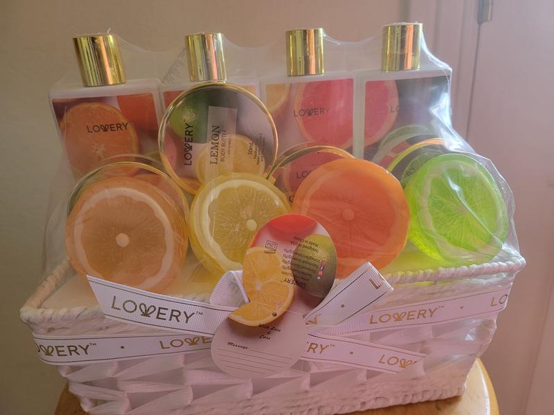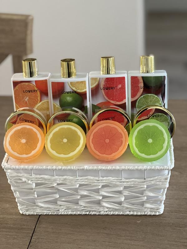 Bath and Body Care Gift Set, Home Spa Kit in Lemon, Orange, Grapefruit Lime Scents, Relaxing Stress Relief Gift, 19 Piece