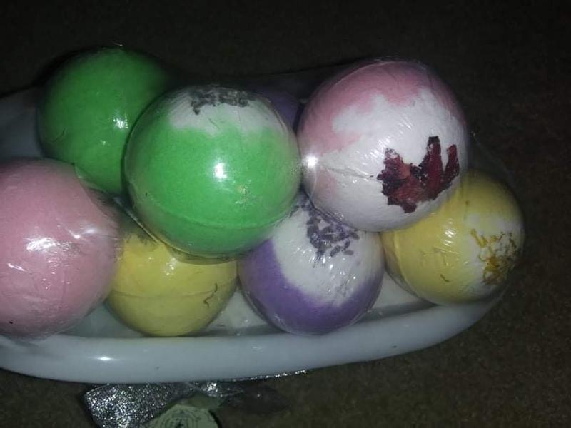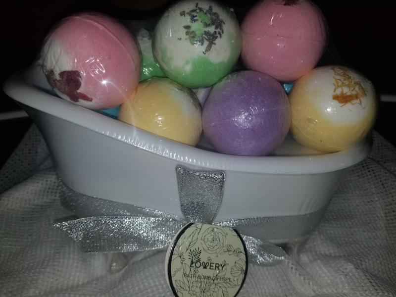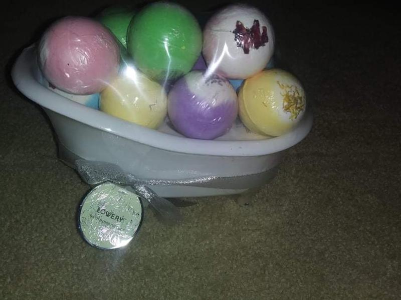 • Set includes - 10 oversized bath bombs 100 ml each, 1 white tub
