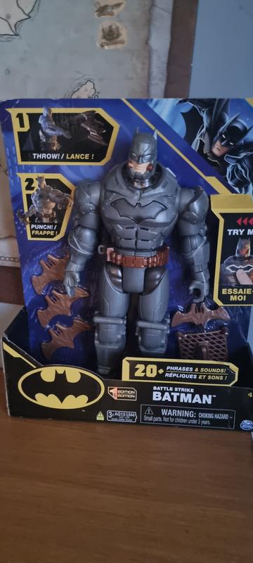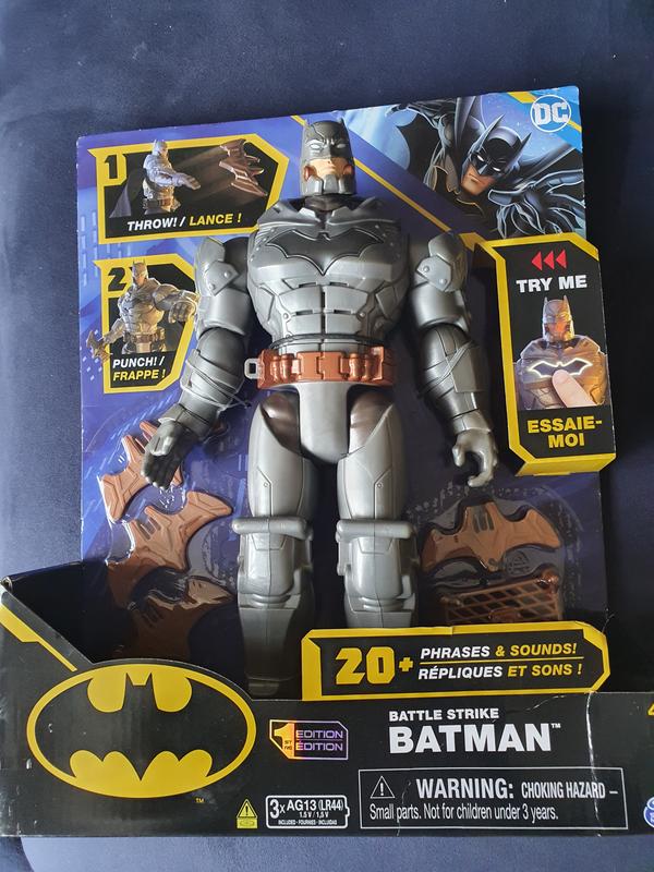 This 12" Batman toy is great. It is very strong and the arms and legs also move, and also comes with a cape and some additional accessories - some plastic bats and a shield. The Batman toy has 15 sound effects as well as a light up Bat on his chest. My son loved playing with this figure for hours. It is great for Batman fans and non Batman fans too. The sound effects were very realistic and not too loud. It is a great toy, my son loves it.