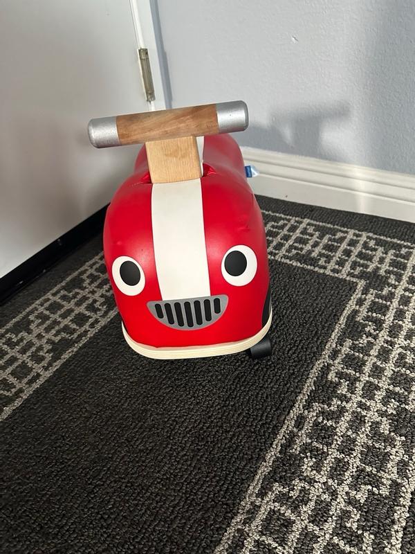 Such a cute little scooting car! The body is super soft and the colors are so bright. The wooden handles are smooth and perfect for little hands. Very good pricing for such a well-made product. My little loves it.