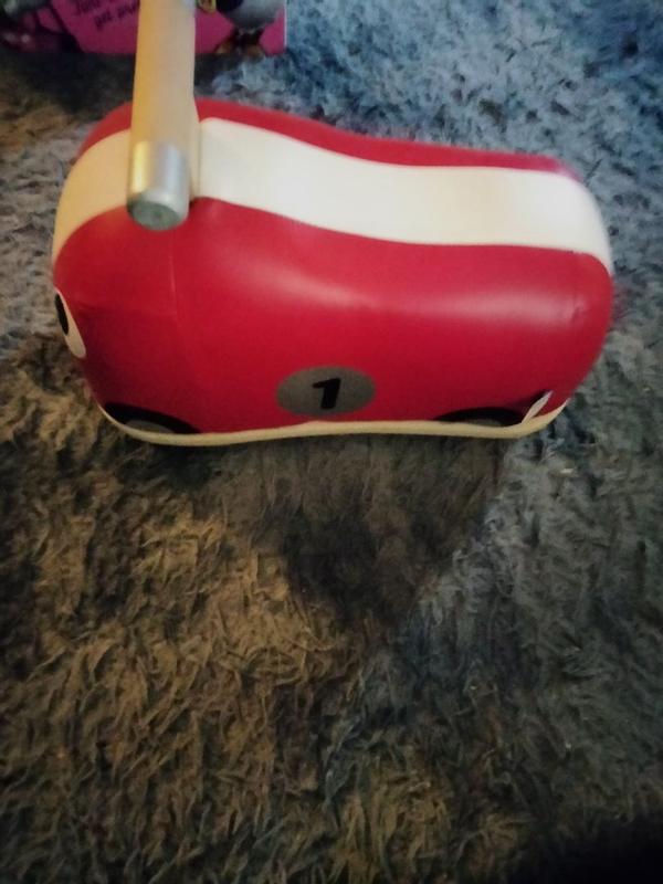 So I love this ride on toy. It's got a cushion for sitting and the whole thing is soft other than the bottom. It's light and super entertaining. Great for practicing going around corners or straight lines. Absolutely a great item for toddler.