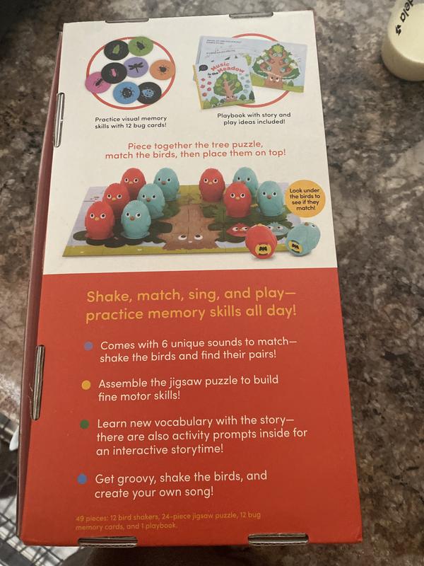 My 4yo son immediately engaged with the game. We followed along with the story and put together the puzzle, matched the bugs and lastly matched the Shaker birds. I was impressed with his concentration in listening to each of the different sounds that the birds make. The game seems well made and sturdy. I appreciated the eco friendly packaging. I look forward to future games and musical numbers!