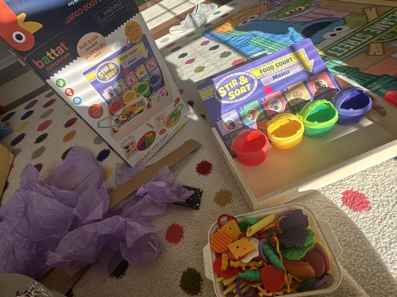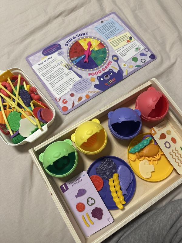 My 3 year old toddler loved all of the pieces, immediately began sorting the food according to their colors. This game is engaging and inviting for children to learn while they are having fun. Even I was excited to play. The materials are high quality and every piece has a lot of details. We were filled with excitement as we opened the beautifully and neatly organized package. It was a wonderful experience from the beginning as we opened it and to the end while sorting and playing with the toys. Thank you!
