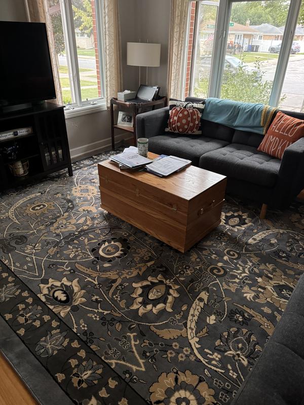 This dark gray rug is perfect in my ready room. Gives a nice and cozy feel.
