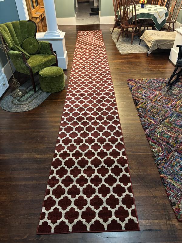 It looks great! Just as pictured with nice texture - not too flat but with a little bit of plush. Perfect for the hallway.