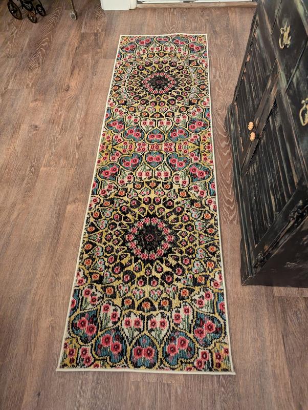 We love the vibrant colors and thickness of this well made rug. This is our first purchase and are happy with the product and the experience. We look forward to shopping more rugs. Thank you very much.