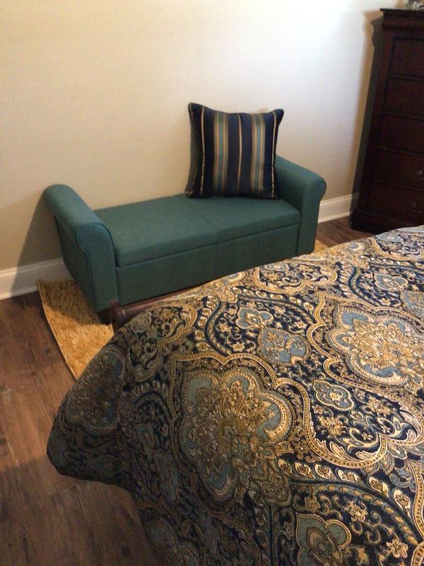 I love that this is aqua with a touch of white. It finishes off my bathroom perfectly!
