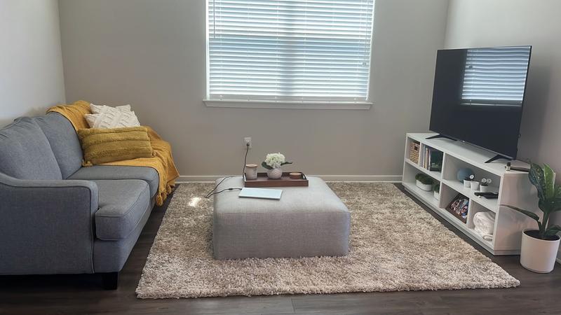 LOVELY rug. Inexpensive but well made. Shipped and received quickly. Packaged well. Instructions helpful. Brightened up our apartment.