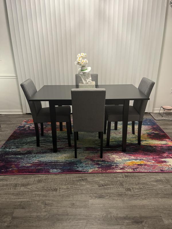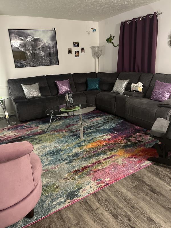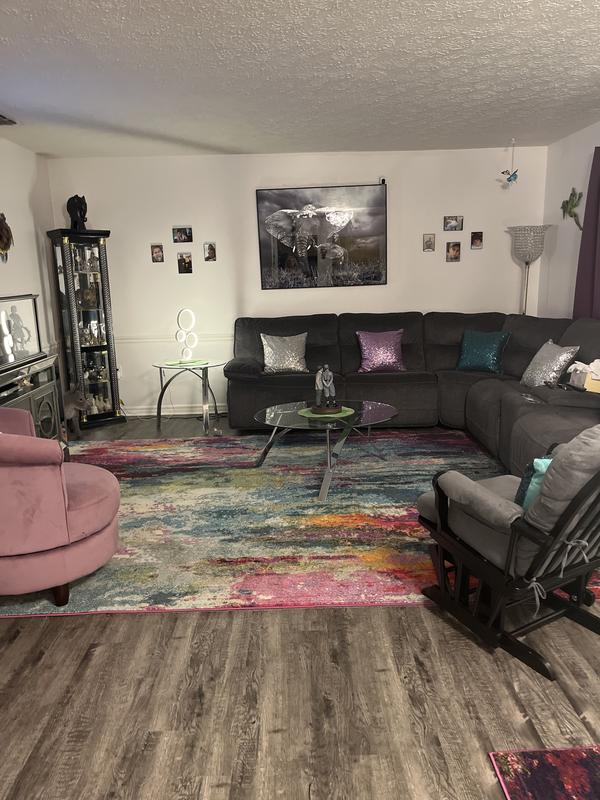 This rug brings vibrant colors in my living room which was only in the blues. Now I can add more colors to make it vibrant. It’s short enough that the iRobot can go over it easily but soft enough my animals plop on it. Easy to spot clean too.