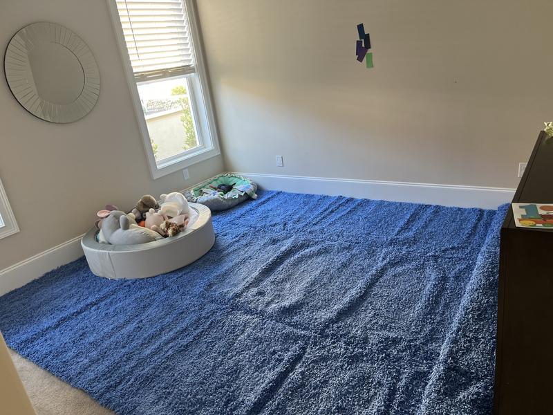 This rug was perfect to open up our small space living room in our apartment and give us a soft place for our feet in the most used room in the place. Vacuums well and no shedding! It flattened out great in a couple days with a couple books on the corners. Se got the Snow White rug and I was worried at first because sometimes companies will call it white and it’ll end up being cream or off white. It is Snow White! It does look different in different lighting tones so be prepared for that but if you have other white tones in the room they adjust with the lighting as well. I couldn’t be happier with it!