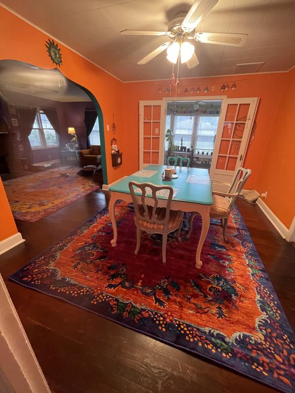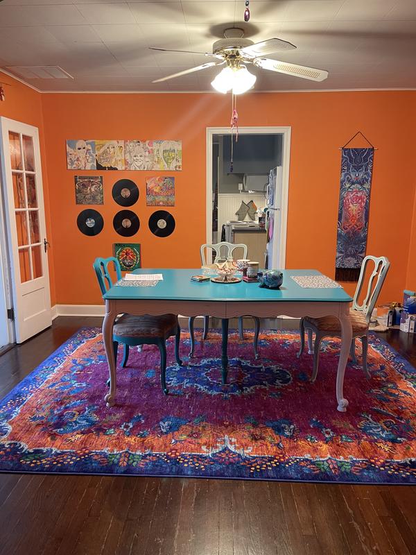 I absolutely love this rug. I got the same one with the different colors for the living room and this one for my dining room room and it really pulls the house together.
